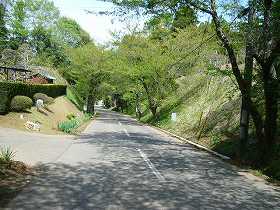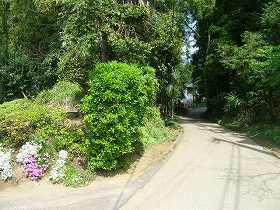 | 2郭南西側の大堀。こうしてみると、やはり堀切であることがよく分かる。 | 満願寺脇の切り通しの道。この右側の上が満願寺跡である。ここも出城であった可能性は高いと思われる。 |