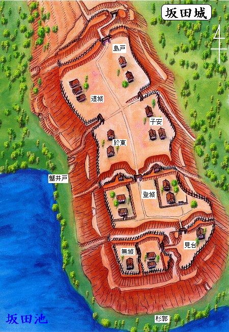 その後坂田城は井田氏の本城となった。坂田池を望む標高35mの台地上全域に展開する広大な城で、この地域では最大級の城であり、遺構も良く残っている。