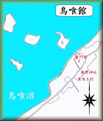 鳥喰館は、上鳥喰の普門寺の辺りにあったという。現地には何となく方形の区画は見られるが、遺構は残っておらず、詳細は不明である。