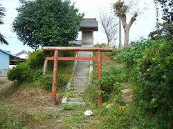 | (以前の記述) 亀崎城は八日市場の西のはずれ、寒風城の500mほど東南にある。比高20mほどの台地で新村城、田久保城と向かい合う位置にある。城址には稲荷神社が建っている。 稲荷神社の周囲には写真のような土塁状の高まりがあるが、城郭的遺構なのかどうかは分からない。この郭から北に向かって平地が続いているが、こちらの方は山林化していて現状を把握するのは難しい。 城主等も未詳だが、新村城、あるいは寒風城の支城だろうか。 |