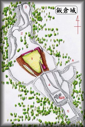 この1郭が城の中心となるわけだが、飯倉城は、椎名一族の主要な城館の1つであったといわれているので、かなり広大な城郭であった可能性が高い。北側の台地先端に続いている2,3なども城域であったと見てよいと思われる。