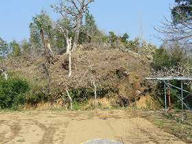 | Bの土塁の西側にある堀切。深さは8mほどもあり、かなり規模は大きい。これが本来、北側にまで延びていたものであろうか。 | 東側下の2郭の先端にも土塁がある。ここも郭であったものだろう。 |