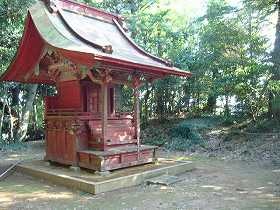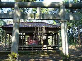 | 1郭入口の切り通し。 | 1郭の南側には稲荷神社があるが、この神社、かなり荒れている。拝殿は柱だけしかない。 |