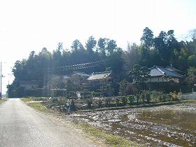 陣屋の跡地について。村の真ん中を通る県道上に小さな陸橋が架かっている場所があるのだが、その県道西側の斜面上一帯が陣屋跡地であると推定されている。
