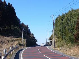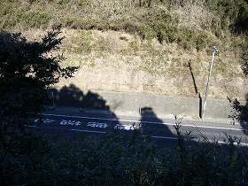 | Aの部分から下の広域農道を見たところ。高さ20mほどあろうか。 | Cの切り通し部分。これが遺構なら、たいしたものだが・・・・。 |