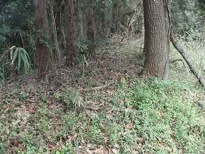 前城よりも南側には特に城郭遺構らしきものは認められないが、右側には2mほどの段差があることから、前城の周囲にも本来は堀や土塁がめぐらされていたのかもしれない。亀甲台というのはどういう理由による名称なのか不明であるが、この辺りまでが城域であったと見るべきであるのかもしれない。