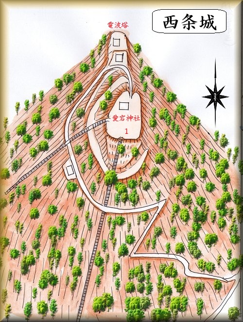 西条城は南北朝時代に赤松円心入道によって築かれたのに始まるという。
