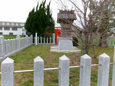 2郭は城内で最大の郭であり、長軸100m以上もある。そして中央部には大きな土壇がある。図の2の上と書いてある部分である。ここは物見櫓でも建てられていた場所なのであろうか。近代には神社が建てられていたようで、現在建物は残っていないのだが、参道や灯篭、周辺の石畳の道などが残されている。
