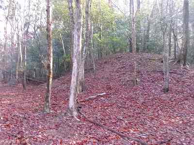 防塁はこの2つの古墳を取り込んでおり、古墳の間の部分が虎口のようになっていた。