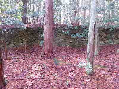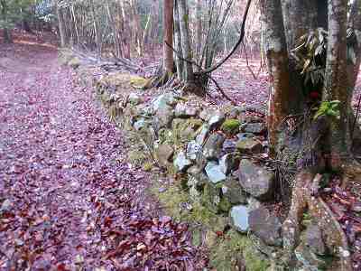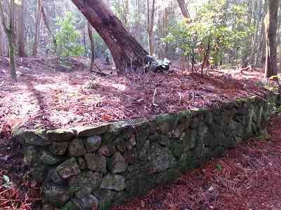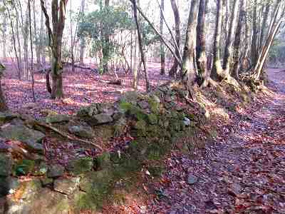 土塁は鳳張1号墳の所から北側にも延びている。こちらの土塁の側面部には石積みが見られた。