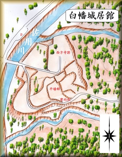 白幡城居館は、その名の通り白幡城の登城道の入り口付近にある。白幡城赤松氏の平素の居館が営まれていた場所であると思われる。