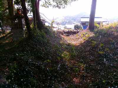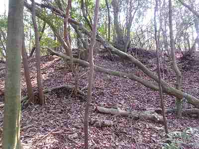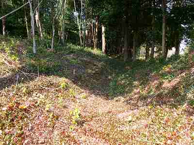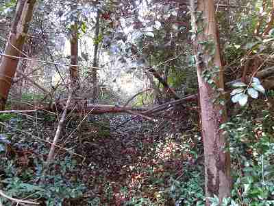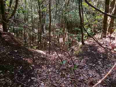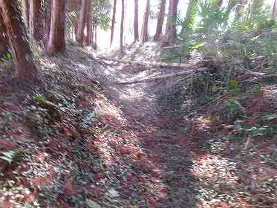 この城の特徴として は、スプーンで山を削ったような堅堀状のものが四本あることである。遺構の 残存状況は良好である。