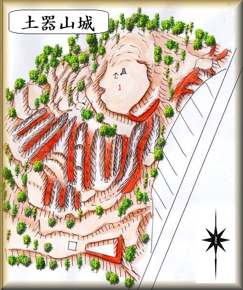 その後土器山城は廃城となったと言われているが、現在の城の遺構は戦国時代のもののように見えてしまう。