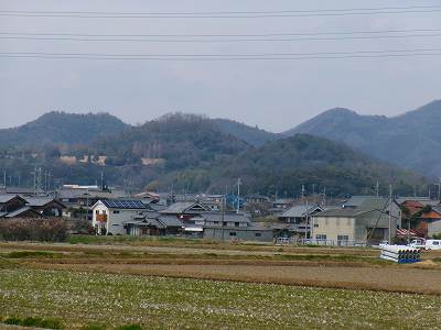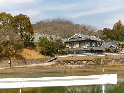 土器山城は、万願寺川の南側にそびえている比高30mほどの山稜に築かれている。