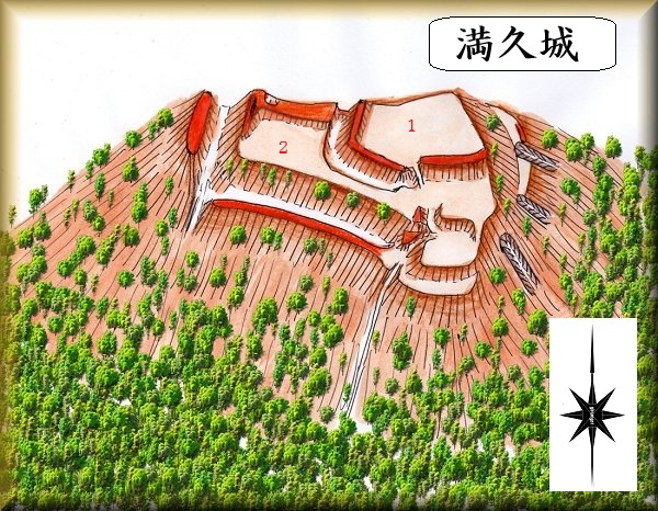 満久城は、満久町の中心部にあるオーラセントゴルフ倶楽部の中央にそびえている比高70mほどの山稜に築かれている。