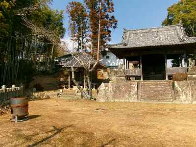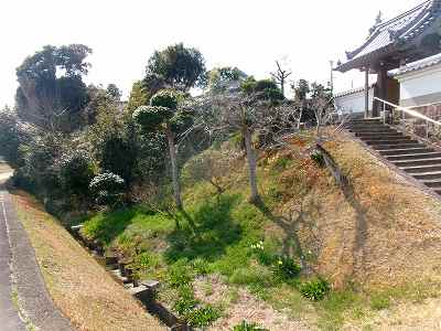 明確な城郭遺構は見受けられないが、寺院のある所の土手は切岸状になっており、下には水路もめぐっている。