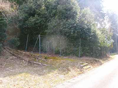 城址の北側の道には車を停められそうな余白があるのだが、こちら側からだと柵があって、神社の方に立ち入れないようになっている。