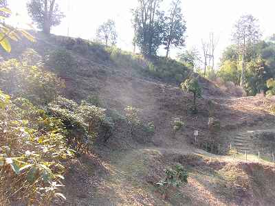 1郭内部も傾斜地形で、恒久的な城郭のような感じがしない。