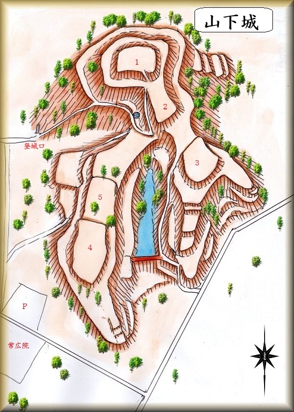 山下城はかなり規模の大きな山城であり、ルートも整備されて歩きやすくなっている。お勧めの山城である。