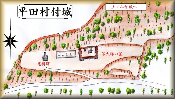 地図などには谷大膳墓として掲載されているので、それを目印にしていけばよい。