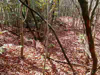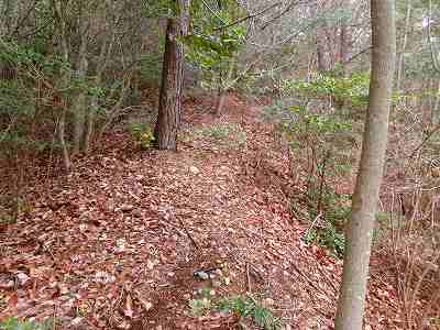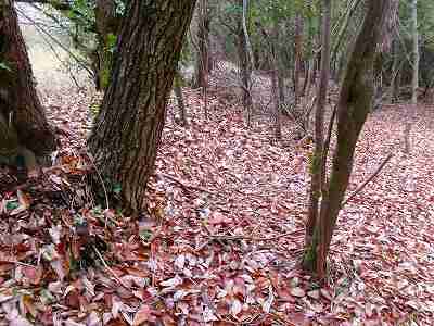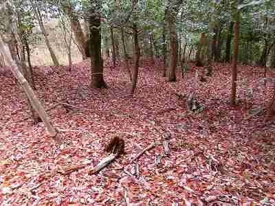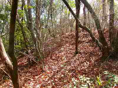 これが土塁なのか、土地が削られた跡の改変なのかよく分からない。
