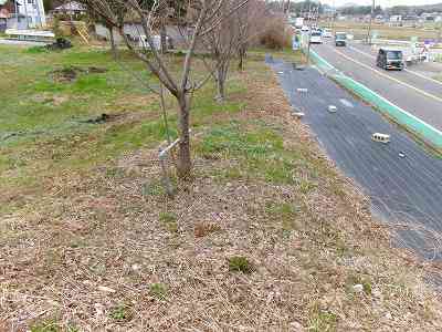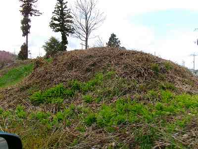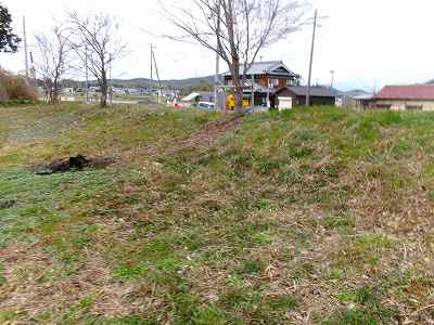 県道を通っていると、道路脇に土塁が残されているのが見えてくる。