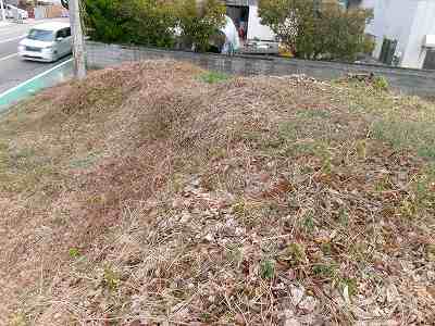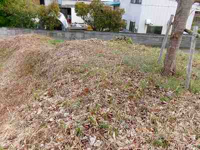 この上の段が城の中心部だったと思われるが、中学校や道路の建設によって大半は破壊されてしまっているとのことである。