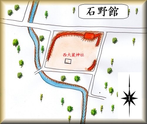 石野館は、三木鉄道石野駅跡地の南西60mほどの所にある。