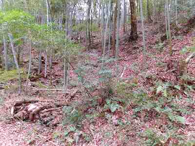 登っていったところが平場になっているが、それだけであり、特に城郭遺構は見られない。