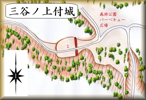 三谷ノ上付城は三木城の真南1200mほどの位置にある。