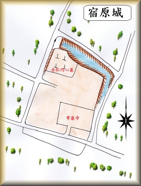 宿原城の城主についてははっきりしていないが、赤松円心の墓所があることからも、赤松氏に関連した城館だったのではないかと推測されている。
