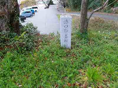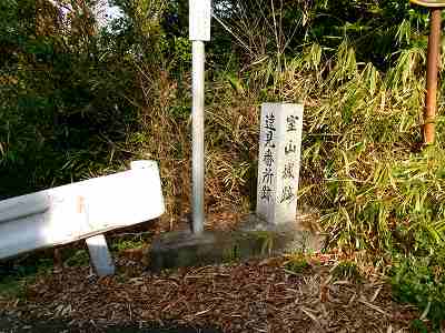 1郭に上がるカーブの所に城址があり、片面に「遠見番所跡」、片面に「室山城跡」と刻まれている。