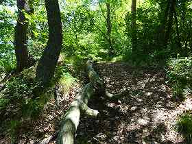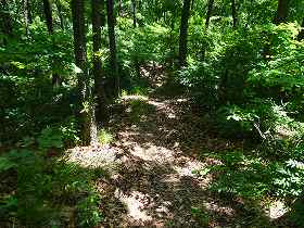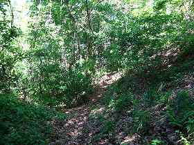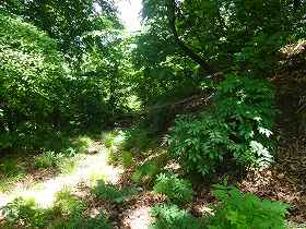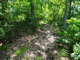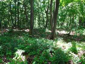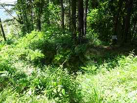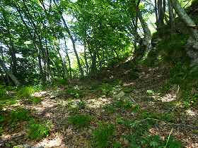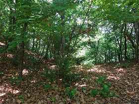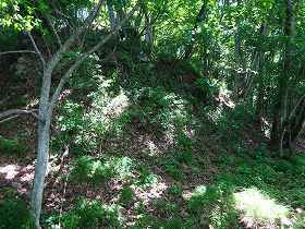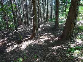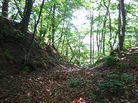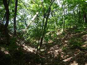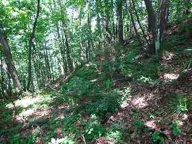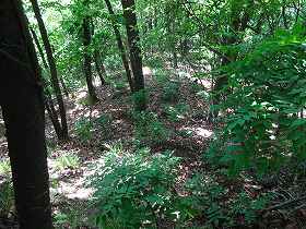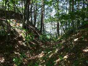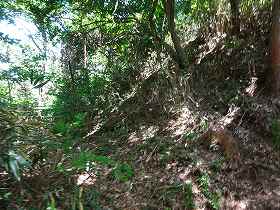 | 尾根筋を分断する大堀切。といったも、あまり明瞭ではない。 | |