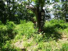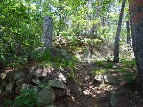 この地方には山稜上を利用した古墳というのがよくあるようだ。実際、天城城のピーク部も古墳となっていた。倉科将軍というのがどういう人物であったのかは分からないのだが、古代に倉科地域を支配した大勢力者であったのだろうか。案内板は、古墳の頂上部ではなく、西側に降りて行った腰曲輪状の部分にある。