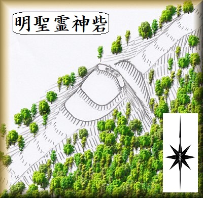| 明聖霊神の入口。2段構造になっている。 | 土塁上に祭られている祠。 |