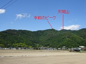 | 鷲尾城の山麓から遠望した天城山。ここからの比高は320mほどある。 | 山頂手前にあった切岸状地形。 |