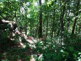 一見して登り口が分かりにくいのだが、よく見れば左手に山道が続いている。そこを進んでいくと、すぐにいい道になってくる。斜面をジグザグしながらそれを登っていくのである。あまりきつい道ではないため歩きやすい。やはりこちらから登っていくのは正解だったようだ。