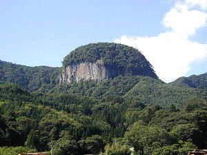 北側山麓(国道145号線側)から見た丸岩山。垂直に切り立った崖。どこから見ても目立つ山である。まじにこれ登るのかよ〜。だいたい本当に登れるのか〜。