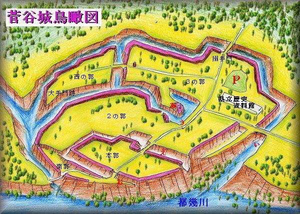 しかし、私はこの城をあくまでも「菅谷城」としておく。確かにこの城の出発点は畠山重忠の居館であったのかもしれないが、現在見られる遺構は、戦国期の「城」である。重忠の居館はもっと簡素なものであったであろう。しかし一般の人は、この城を見て「なるほど、さすがに畠山重忠、立派な館に住んでいたものだ」と思い込んでしまいそうだ。ということもあって、ここはあくまでも「菅谷城」と呼ぶべきである、と思うのである。