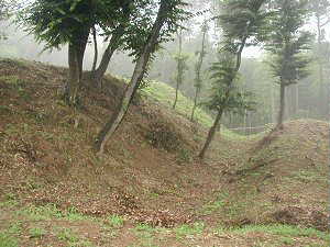 本郭の周囲下には横堀が巡らされているのだが、これは幅2m、深さ1mほどのごくごく小規模なものであった。