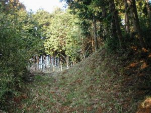 上の腰曲輪から続いていく横堀。この辺りでは、あまり幅が広くはない。