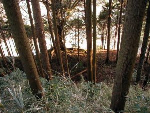 (け)の部分の土手を北側から見た所である。こちら側から見ると、櫓台のように見えなくもない。