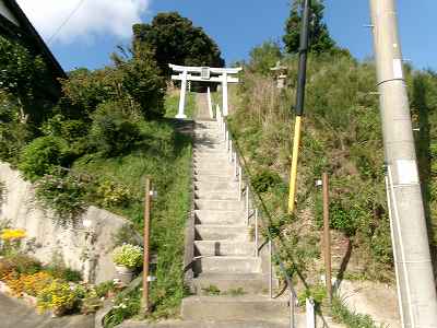 南側に参道入口がある。神社とはいっても駐車場はなく、参道の入口辺りにかろうじて寄せて1台停められる程度のスペースしかない。