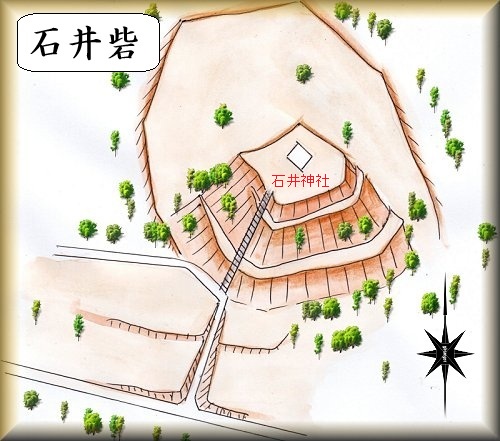 近くまで行くと石井神社のある高台がそびえているのが目立っている。これが砦の跡らしい。