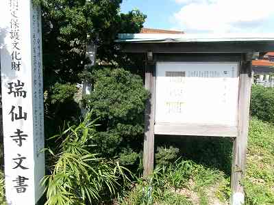 寺の入口には県指定文化財の瑞仙寺文書に関する案内板が立てられていたが、館の案内はなかった。