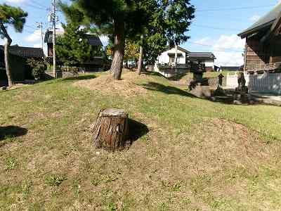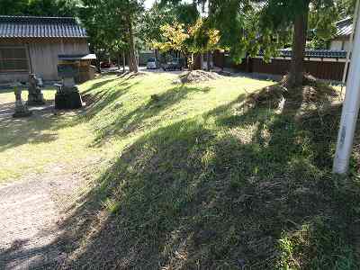 神社の土塁が城郭遺構なのかどうかは怪しいのだが、南側の土塁と堀は城郭遺構の名残とみてよいものらしい。