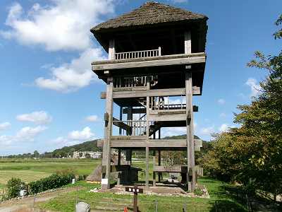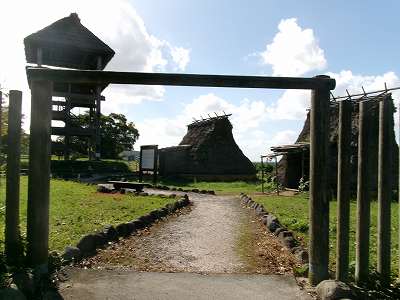 また、寺内城の東側尾根の先端部あたりには弥生時代の物見櫓、住居、門などが復元されており、目を楽しませてくれる。