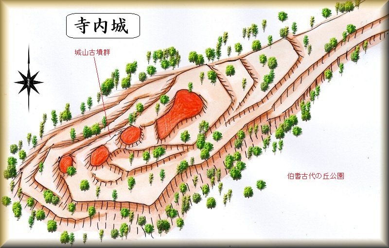 海岸線近くの旧淀江町にある伯耆古代の丘公園が、寺内城の跡だというので、この公園を目指していく。