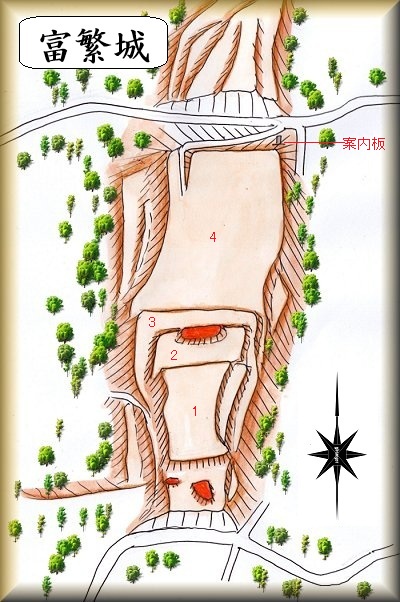 富繁城の城主等は不明であるが、山名氏に関連した城郭だったと考えられている。